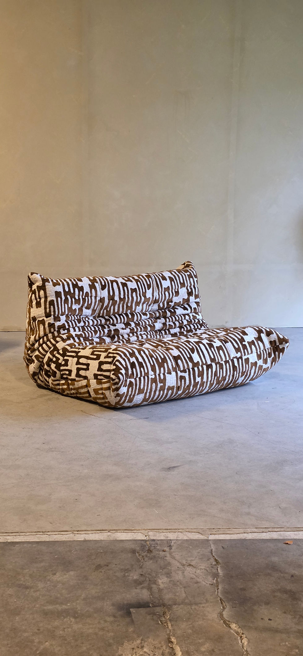 Original Ligne roset Togo set, professionaly reupholsterd in brown Corduroy fabric.